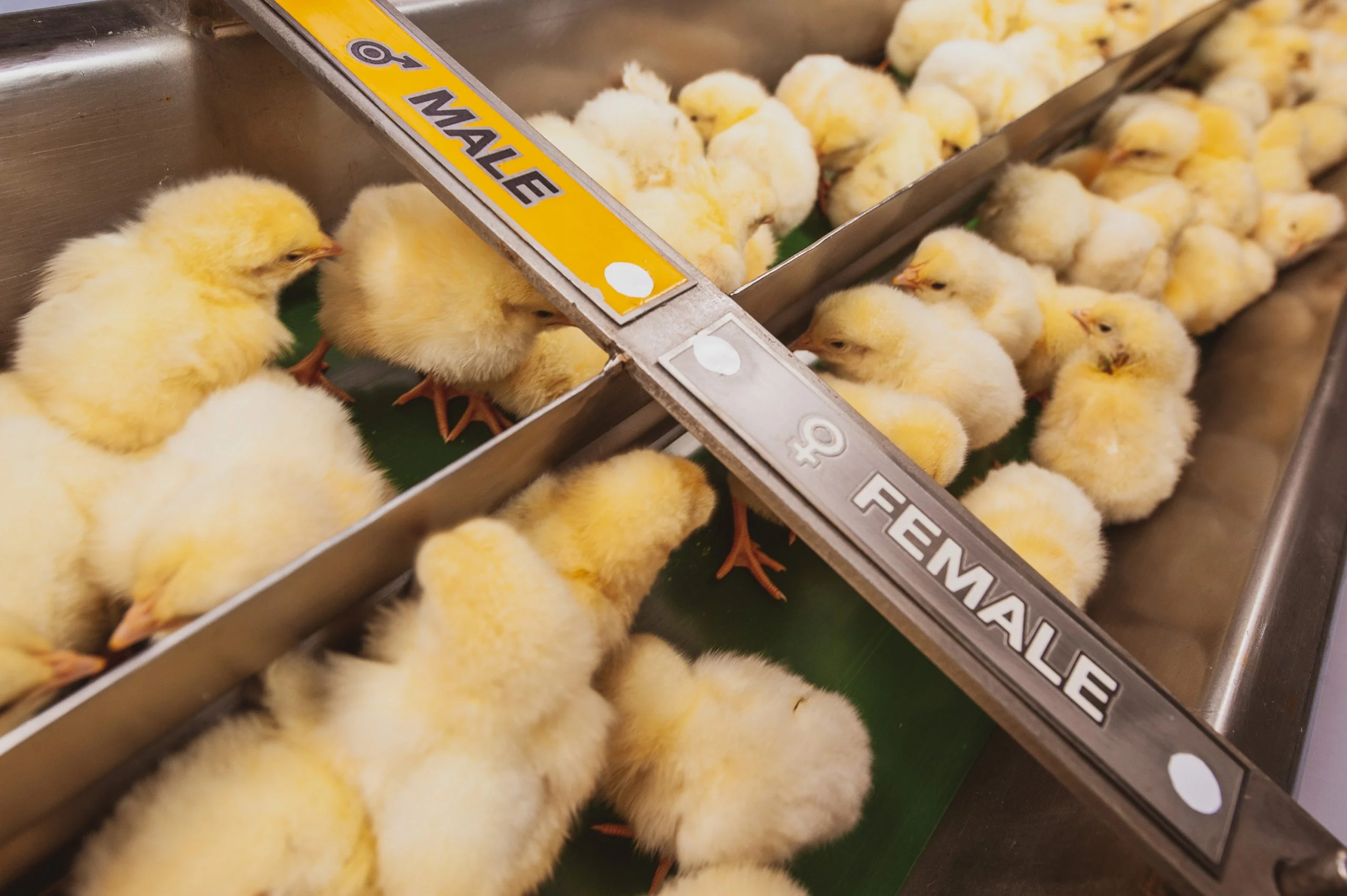 Unlike female chicks, males will never lay eggs and therefore the egg industry considers them to be useless. For profitability and efficiency, they are culled and killed a few hours after they hatch and their sex is identified.
