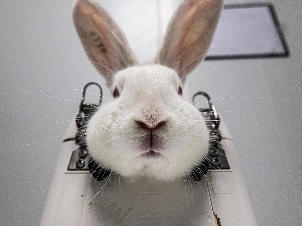 Plusieurs milliers d’animaux sont soumis à des tests de produits cosmétiques, comme du shampoing ou du mascara, et se trouvent ainsi condamnés à une vie de souffrance dans des laboratoires à travers le monde. Ces essais impliquent le gavage des animaux avec un produit ou encore l’application d’une substance concentrée sur la peau rasée d’un animal ou directement dans ses yeux pendant plusieurs jours.